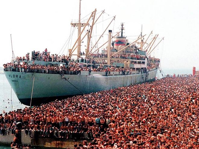 “Soltanto una forza straordinaria degli italiani può porre fine a questo disegno per le future generazioni” . Quando si perdono le radici si perde tutto. Lo schifo nel quale viviamo, con questo disfattismo da autorazzismo italiano, ci ha portati ad essere messi sotto scacco da questa attricetta del mainstream che si chiama Carola, ciò avviene perché evidentemente qualcuno ha pensato di svenderci”. “La Chiesa cattolica ha abiurato Gesù Cristo, la sinistra ha abiurato le classi operaie . Il cattocomunismo – conclude – è perfettamente funzionale a questo disegno. Se non lotteremo fino in fondo per frenarlo saremo perduti, ma saranno perduti soprattutto i nostri figli ed i nostri nipoti che non troveranno più queste radici. Abbiamo il dovere come i crociati ed i templari di difendere questa cultura”. -3) Da FB del 03.07.2019 “””Qualcuno ha mai sentito nominare “Namik Xhaferi?” …..Nooo ??…. Peccato!!. Era il capitano di una nave carica di migranti, che fuggivano da un Paese in preda all’anarchia e sull’orlo di una guerra civile (Albania). Cercò di entrare nelle acque territoriali di un Paese straniero, razzista, xenofobo e disumano (l’Italia) che rifiutò di accoglierli, anche se possedeva il porto sicuro più vicino. Lui non si perse d’animo e sfidò il blocco navale; ma una Corvetta ( Italiana di nome “Sibilla” ) eseguendo gli ordini di quel governo fascista (italiano), speronò la sua nave, affondandola e provocando la morte di 83 esseri umani . Naturalmente, diedero la colpa a lui (comandante Namik) e anche un po’ al capitano della Corvetta (italiana), perché nei governi fascisti (Italia) pagano sempre i pesci piccoli. Fu arrestato e si fece quasi quattro anni di carcere . Il capitano della corvetta (italiana) solo la metà. Non fu mai considerato un eroe, da nessuno. Solo un criminale. Nessuno fece raccolte di fondi per pagargli le spese legali, nessun politico di nessun partito andò ad abbracciarlo e ad applaudirlo. Era il capitano della nave “ Katër i Radës” , affondata il 28 marzo del 1997 dalla Corvetta Sibilla (italiana) nel Canale di Otranto. Il governo fascista, razzista e xenofobo (italiano) era guidato da un uomo senza partito, tale Romano Prodi , messo lì da una coalizione di centrosinistra dove nessuno dei due principali partiti aveva voluto concedere all’altro la Presidenza del Consiglio (quindi toccò a lui di fare il Presidente). Il ministro dell’Interno o come si direbbe oggi e a ragione, dell’Inferno o della Mala Vita, era tale Giorgio Napolitano (marzo 1997) . Entrambi (Prodi e Napolitano) ebbero occasione, negli anni che seguirono, di provocare disastri ben peggiori, soprattutto il secondo, responsabile di tutti i fenomeni migratori che hanno coinvolto il suo Paese nell’ultimo decennio. All’epoca c’era chi militava nel PPI, come Graziano Delrio , o nei DS , come Matteo Orfini . Sì, sì, proprio quelli che abbiamo visto salire sulla nave “Sea Watch 3” (vedere la foto allegata). Caro Capitano Namik Xhaferi , la prossima volta cerca di nascere tedesco invece che albanese, possibilmente ricco, meglio se donna. E trovati un cazzo di nome che si possa pronunciare meglio, tipo Carola ma, soprattutto, cercati i contatti giusti e carica solo schiavi africani perché altrimenti a nessuno verrà in mente di accusare il Governo di razzismo””””. Antonio Moretta (03.07.2019)
