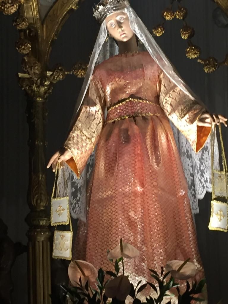 Il 21 settembre 2019, alle ore 18, nella Chiesa di Sant’Agata, Largo S. Giovanni di Matha (P.zza Sonnino) Trastevere Roma,la Presidente del Club per l’Unesco di Roma, avv. Maura Gentile ha organizzato un evento dedicato all’arte religiosa. L’antropologo Mario Pesce, il Presidente e il consigliere della Confraternita, insieme ad uno dei fondatori dell’Associazione ” Il Ventriloco” Gianluigi Spinaci hanno appassionato i soci del Club e gli ospiti presenti, con la narrazione della storia della Chiesa di Sant’Agata e della sua illustre Ospite: la Madonna del Carmine, la “Madonna de’ Noantri”. L’evento si inserisce nella Celebrazione delle “Giornate Europee del Patrimonio 2019 (21-22 settembre): “Un due tre-Arte Cultura e intrattenimento! L’obiettivo principe è quello di creare un ponte di collegamento tra i luoghi della cultura, le comunità e le tradizioni con il presente e preservare soprattutto, la memoria storica. La chiesa di Sant’Agata in Trastevere era la casa di papa Gregorio II e, dopo la morte della madre, divenne edificio religioso con il monastero annesso (1575). Fu assegnata alla Congregazione Dottrina Cristiana e qui venivano educati i bambini appartenenti alle famiglie meno abbienti del rione. In seguito venne abbandonata ma, nel 1710 l’architetto Giacomo Recalcati iniziò i lavori di restauro. all’improvviso mancarono i fondi; i soldi lasciati da Recalcati non si trovarono e, il capomastro Domenico Guidi completò l’opera di restauro. Le sue spoglie giacciono sotto la navata centrale della chiesa. La facciata si presenta in forme tardobarocche, l’interno è a navata unica con tre cappelle per lato; la volta è a botte. Vi sono conservate opere di Girolamo Troppa e di Biagio Puccini. La pala dell’altare raffigura il martirio di Sant’Agata martire; nel 3° secolo d.C. Tiberio Claudio Quinziano, proconsole romano era governatore della provincia di Sicilia a Catania volle conoscere la vergine Agata per la sua bellezza e per le nobili origini, se ne invaghì ma venne da lei rifiutato. Lui la fece torturare e le fece strappare i seni con grosse tenaglie. Di notte, in prigione, Agata ebbe la visita di San Pietro e le ricrebbero i seni. Allora fu gettata sui carboni ardenti: il corpo bruciò, ma non il mantello. I catanesi stavano attraversando un periodo di paura perchè l’Etna era in fase eruttiva, si avviarono col mantello verso il vulcano e questi si spense. Il Segretario Generale della Confraternita dott. Giorgio Aicardi ha poi narrato la storia del ritrovamento della Vergine, nel mare. Nel 1506, un gruppo di marinai trovò, a Fiumicino, una statua scolpita in legno di cedro raffigurante la Santissima Vergine. Fu portata a Ripa Grande presso la Chiesa di San Crisogomo che era la sede dei Carmelitani e la dedicarono alla Madonna del Carmelo ( vi rimase fino al 1890). Per un decennio venne ospitata nella chiesa di San Giovanni dei Genovesi e poi fu trasferita definitivamente nella chiesa di Sant’Agata dalla quale ogni anno, il sabato dopo il 16 luglio, la statua, innalzata su una grande “macchina”, viene portata in processione per le vie del rione. E’ chiamata la “Madonna de’ Noantri”, protettrice del rione Trastevere. L’ordine dei Carmelitani ha avuto origine dal Monte Carmelo, in Terra Santa; il segno distintivo della Confraternita è lo Scapolare che consiste in due piccoli lembi di lana marrone, fatti con lana d’agnello ( simbolo di Gesù, l’Agnello di Dio), uniti da una stringa e portati sulle spalle. La devozione dello Scapolare nacque il 16 luglio 1251, quando la Madonna del Carmine apparve a San Simone Stock, padre dei Carmelitani, e gli disse: “Prendi questo scapolare. Chiunque muoia indossandolo, non patirà il fuoco dell’Inferno. Sarà simbolo di salvezza, protezione dai pericoli e promessa di pace”. A completare la performance, una interessante rassegna guidata ed illustrata dal Provveditore della Confraternita dott. Renato Urbani. Dal 700 al 2019 sono stati donati trenta vestiti da famiglie nobili come i Borghese, Bonaccorti, e nel 900 da Micol Fontana e da Antonio Grimaldi ; nel 2018 Guillermo Mariotto ha offerto alla Vergine un abito in crepe di cady di seta bianca, ricco di stelle mariane, rose e un mantello rosso ricamato con fili d’oro zecchino. La corona è stata offerta dall’orafo Gianni De Benedittis ed è in oro, argento e rubini (2018). Nel 2019, lo stilista romano Luigi Borbone, ha realizzato un lungo vestito rosso granato in shantung con ricami in cristalli arricchito da un velo in tulle di seta avorio. Per i trasteverini la Vergine è “LA MIA SIGNORA”!