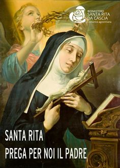 Era molto piccola quando i genitori la portarono in campagna e la adagiarono in un cestino di vimini, mentre loro lavoravano. Un giorno fu circondata da uno sciame di api e depositarono il miele nella sua boccuccia, senza pungerla. Un contadino che si era ferito con la falce, passava di lì, vide la scena e si diede da fare per allontanare le api che volarono via ma, il suo braccio era guarito. Quello fu il primo prodigio operato da Santa Rita. Da bambina ella si raccoglieva in preghiera e veniva visitata da un angelo, spesso nella chiesa di Sant’Agostino o nel monastero di Santa Maria Maddalena, nella vicina Cascia. Poichè apparteneva ad una famiglia benestante, Rita ricevette un’ istruzione superiore a quella delle donne del suo tempo. Dalle notizie raccolte dagli agiografi, risulta che Rita era di una bellezza straordinaria e, aveva appena compiuto tredici anni quando i genitori la promisero in matrimonio ad un giovane ufficiale, Paolo Mancini, legato alla fazione ghibellina. Il giovane aveva una posizione adeguata a quella dei Lotti; era proprietario di un mulino ma, era mal visto dagli agricoltori che si ritenevano defraudati di parte del raccolto. Egli era un uomo prepotente e spesso maltrattava anche la moglie.Gli sposi ebbero il dono di due gemelli: Giangiacomo e Paolomaria. Con la loro nascita e con la pazienza e l’affetto di Rita, l’uomo si trasformò in una persona nuova ed accompagnava la moglie in chiesa e partecipava a tutte le funzioni religiose, molto sentite e frequenti a Cascia, per via dell’influenza culturale agostiniana, benedettina e francescana. Ma era anche un’epoca di sopraffazione e di violenze; dominava l’odio, faide politico-militari, conflitti tra guelfi e ghibellini e ancora: ostilità per interessi economici, nobili contro la plebe, ricchi contro poveri, artigiani di una confederazione contro quelli di un’altra. Anche Paolo era coinvolto in queste inimicizie anche se, l’amore di Rita lo teneva lontano dai malavitosi. In una notte del 1413, Paolo venne ucciso in un’imboscata, mentre rientrava dal suo mulino. A Cascia regnava l’odio al punto che le leggi regolavano la vendetta; fu ucciso perchè aveva rinunciato alla violenza e per il sospetto di una sua conversione alla causa guelfa. Lasciò la moglie di trentadue anni e i figli quindicenni; Rita cercò di nascondere ai figli la morte violenta del padre per paura che essi volessero vendicarsi e divenire a loro volta bersaglio di vendetta. Per sottrarli a un atroce destino, pregò l’Onnipotente di toglierli dal mondo; si ammalarono e morirono, Rita soffrì moltissimo ma, la loro salvezza eterna era al di sopra di ogni altra esigenza. Da quel momento si ritirò in preghiera in un rifugio, in cima al monte chiamato Scoglio, una roccia scoscesa sopra Roccaporena;si coprì con un manto di pelle caprina ( oggi preziosa reliquia nel Santuario di Roccaporena); visse in isolamento, alla ricerca dell’Amore soprannaturale. Poi fu accolta presso le suore del monastero agostiniano di Santa Maria Maddalena ma, queste la respinsero per tre volte, per il timore di trovarsi coinvolte nella faida tra famiglie. La scelta religiosa di Rita era condizionata dalla necessità di porre fine a una faida tra famiglie influenti di una società dilaniata dal rancore civile; lei confidava nell’aiuto dei suoi santi e si sottoponeva a mortificazioni fisiche, continui digiuni, estenuanti penitenze. Le trattative durarono quattro anni e, alla fine, avvenne la conciliazione tra la famiglia di Paolo e quella dei suoi carnefici. Finalmente, nel 1417 fu accolta nel convento agostiniano e divenne suora a trentasei anni. Secondo una leggenda, l’ingresso avvenne per una fatto miracoloso: mentre stava pregando sullo scoglio ebbe la visione dei suoi tre santi protettori: Giovanni Battista, Agostino, Nicola da Tolentino, la trasportarono a Cascia conducendola in volo dall’alto picco della roccia, all’interno del monastero. Quando le suore la videro in orazione, nel coro, benchè tutte le porte fossero chiuse, decisero di accoglierla, fu suora per quarant’anni. Il convento non era solo luogo di preghiera, accoglieva gli indigenti e venivano curati i malati. Rita li guariva! Il suo primo prodigio da suora avvenne quando, per umiliarla, le chiesero di innaffiare uno sterpo di vite rinsecchito e privo di vita. L’arbusto riprese a germogliare e, ancora oggi, nel cortile dell’antico monastero, s’inerpica su per il muro una vite dal tronco secolare (i fedeli attribuiscono poteri straordinari di guarigione alle polverine di Santa Rita, ricavate dai suoi tralci).