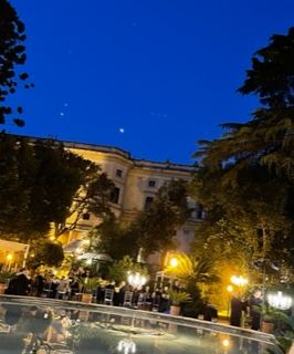 Alle ore venti tutti gli Accademici si sono recati nello storico Palazzo Brancaccio, nel cuore di Roma, una delle dimore più belle della Capitale. L’edificio fu progettato dall’architetto Gaetano Kock e racchiude i caratteri dello sfarzo e dell’eleganza dell’arte classica. Nei giardini del palazzo, tra fontane, ninfeo e corolle, durante la cena di gala, illustri personaggi, hanno ricevuto premi alla carriera: Annalisa Minetti,(cantautrice, atleta paralimpica), Lina Sastri (attrice e cantante), Katia Ricciarelli (soprano), Anna Bruno ( soprano) ed altri ancora.