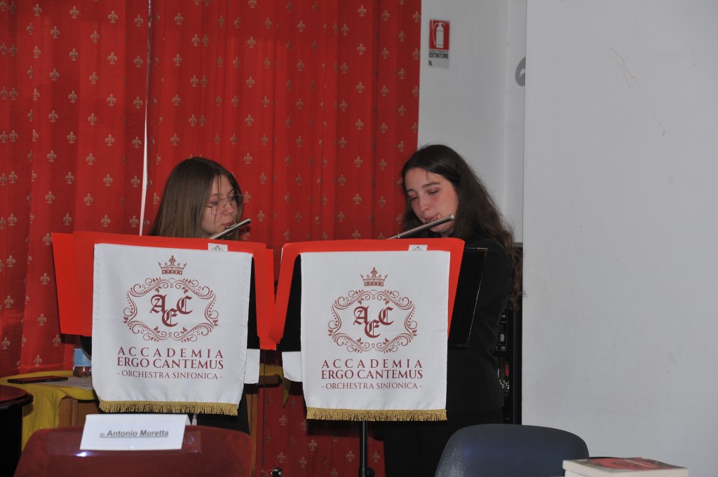 La dolce musica dei flauti, a cura di due giovani musiciste: Flavia Cataldi e Rita Bellocchi, appartenenti all’ Accademia Ergo Cantemus di Tivoli, dirette dalla Co-Founder dell’ Accademia e dal Maestro del Coro Roberto Canichella, ci hanno trasferito in un mondo lontano, richiamato i suoni del vento , della neve soffice e un tocco di soavità e di magia ha sfiorato i nostri cuori!